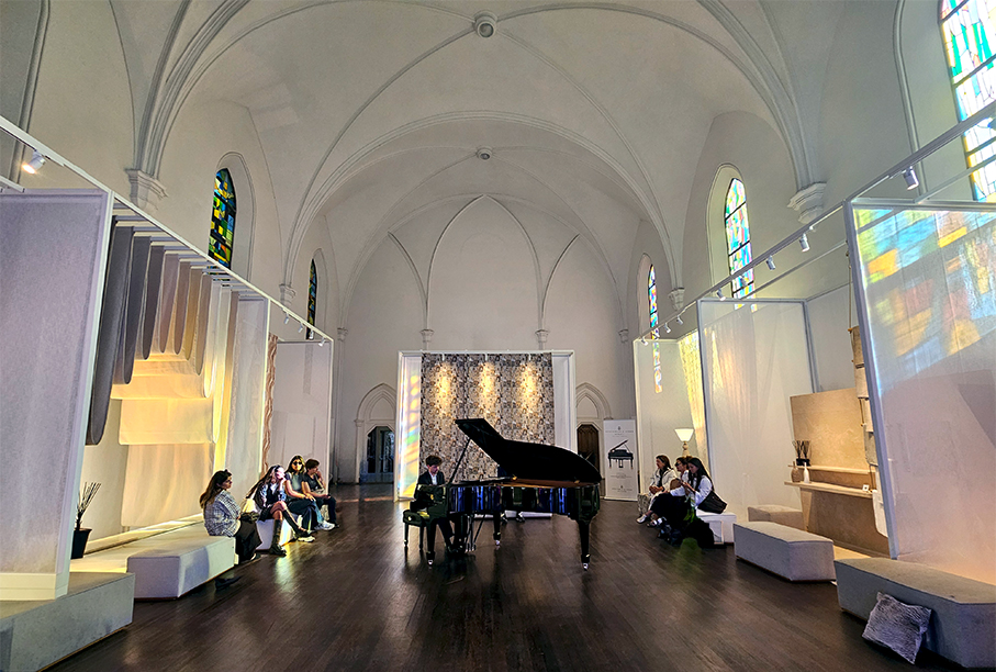Nella navata della Chiesa Cristiana Protestante e nel giardino antistante, nel cuore del Brera Design District, è stata presentata in anteprima la nuova collezione Trame di Vita, in occasione del Fuorisalone . Il progetto espositivo si è sviluppato come un percorso multisensoriale per valorizzare il tessile come vera e propria opera d’arte, tra materia, luce e architettura.