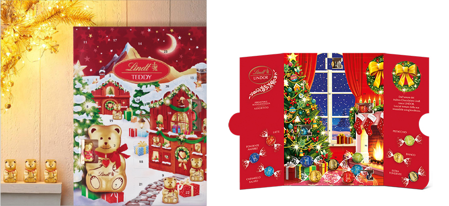 Calendario Avvento Lindor – Lindt rende l'attesa del Natale più dolce con una nuova varietà delle ricette tanto amate: Lindor Latte, Fondente Amabile 45%, Bianco, Caramello Salato, Extra Fondente 70% e Pistacchio. all’interno 24 caselle con tutta l’irresistibile scioglievolezza delle iconiche praline Lindor.