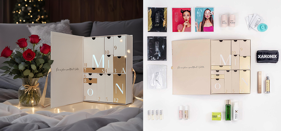 Calendario dell’Avvento - Maison Group un’esperienza di bellezza senza pari: ogni casella svela un prodotto raffinato, scelto per offrire momenti di puro piacere incontrando eleganza e alta qualità nella cosmesi. All'interno 26 prodotti ricercati e di Lusso dei brand : Face+, Rigenera, Xaikonix; 12 Trattamenti Viso spiegati passo passo nella brochure creata per accompagnarti durante il tuo percorso di bellezza, giorno dopo giorno, attraverso i prodotti selezionati nel calendario. Ogni casella che apri è pensata per offrirti un momento di cura esclusivo e per rispondere ai bisogni specifici della tua pelle.