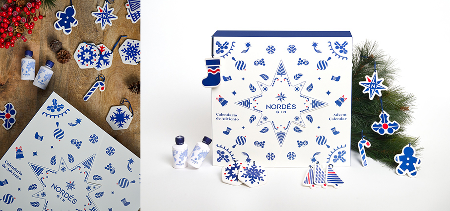 Calendario dell’Avvento - Nordés arrivato alla terza edizione, si è consolidato come un oggetto del desiderio per gli amanti del brand. Torna con un design rinnovato ispirato ai simboli più iconici del Natale: una collezione di oggetti decorativi in ceramica, pensati per addobbare l’albero e integrarsi perfettamente in qualsiasi casa durante le festività. All’interno si trovano 24 sorprese: 8 mini bottiglie di gin Nordés da 5 cl e 16 delicati ornamenti natalizi in ceramica per l’albero, ispirati alla stagione, come rose dei venti, alberi natalizi, fiocchi di neve, campanelle, omini di pan di zenzero, calze, bastoncini di zucchero e agrifoglio.