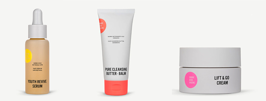 Per i vari tipi di pelli ed esigenze ci sono 6 linee dedicate, ciascuna riconoscibile dalla colorazione del principio attivo: