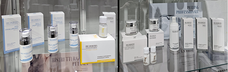I Dermocosmetici JMF, 100% Made in Italy, nascono direttamente nel laboratorio aziendale. Questo significa poter scegliere le materie prime, poter garantire un prodotto sempre fresco e poterne seguire tutte le fasi, dalla formulazione al confezionamento. Nella formulazione vengono rispettate le vere percentuali per ottenere la miglior efficacia del risultato e questo è ciò che fa la differenza. I peeling chimici (viso e corpo) si trovano solo nei migliori istituti, mentre altre linee sono disponibili per l’acquisto per continuare la beauty routine anche a casa.