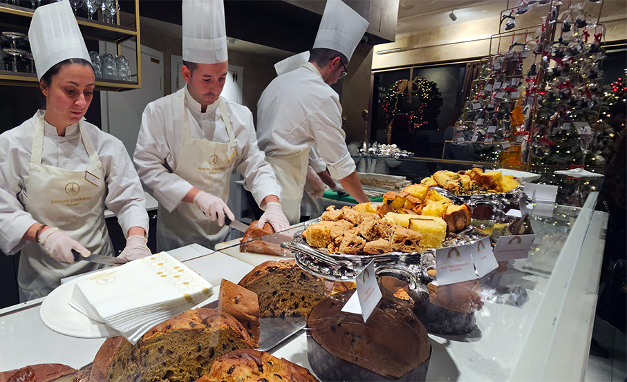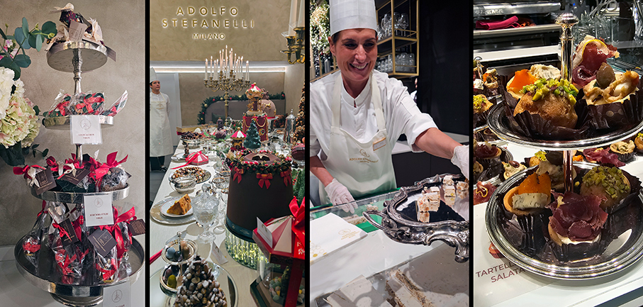Sono dolci pensati per gratificare i sensi, facendo risuonare lentamente la memoria del Natale. Portarli a tavola significa gustare un prodotto straordinario e rinnovare un rito di gioia, calore, tempo condiviso. Tra i lievitati delle feste c’è solo l’imbarazzo della scelta e, durante la presentazione delle sue specialità nella Pasticceria di Via Molino delle Armi a Milano, Stefanelli ci fa assaggiare panettoni, pandoro e torrone, in un negozio addobbato con grande eleganza, come eleganti sono i suoi dolci e i suoi pasticceri.
