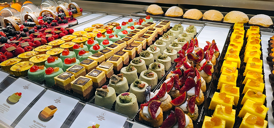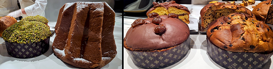 Il Pandoro è candido come neve appena posata, morbido come una nuvola calda. Il suo profumo è quello di una festa lenta e luminosa. Si scioglie sul palato lasciando una nota rotonda di vaniglia, burro e zucchero a velo che diventa neve. Non manca poi la classica pasticceria, dolci di ogni tipo, il cioccolato, il torrone e anche proposte salate.