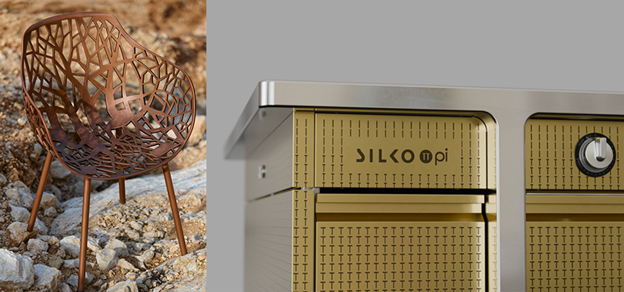 Pi - De Castelli e Silko Una collaborazione che vede insieme per unire eccellenza artigianale, design e innovazione Made in Italy, con l'obiettivo di valorizzare attraverso i metalli e le finiture firmate De Castelli i prodotti altamente performanti del brand Silko, riconosciuto a livello internazionale per le cucine professionali e le attrezzature per la ristorazione. La superficie non è semplice rivestimento: le speciali lastre frontali in ottone De Castelli, lavorate con una finitura custom a erosione, danno vita a una texture esclusiva ispirata al simbolo del PiGreco, che diventa segno distintivo di un design unico e raffinato