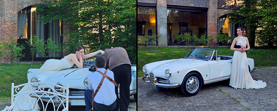 Contemporaneamente, lo shooting live di Marco Sacchi ed Enrico Pezzaldi ha fissato nel tempo l’essenza della serata: sorrisi spontanei e dettagli preziosi, incorniciati dalla raffinatezza delle creazioni di Marco Gabrielli Atelier per la sposa e dall'eleganza rigorosa di Carosi Moda per lo sposo. A completare il quadro, le splendide vetture d’epoca de Le auto di Magnolia hanno offerto uno sfondo ideale per scatti fotografici senza tempo.