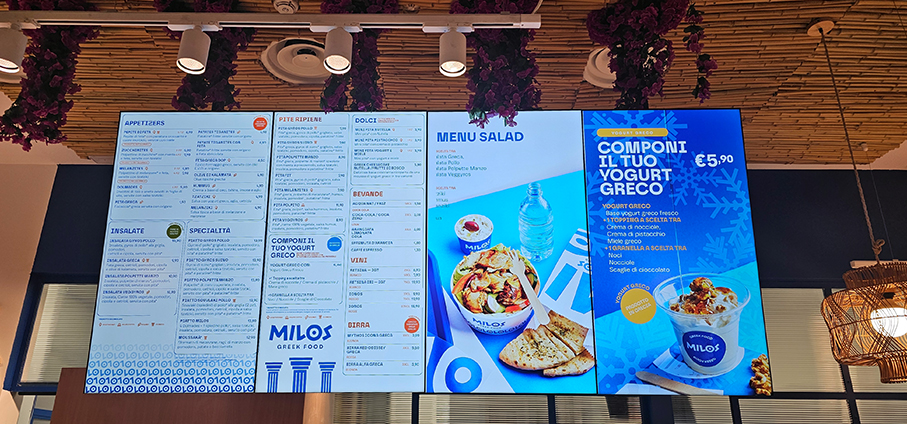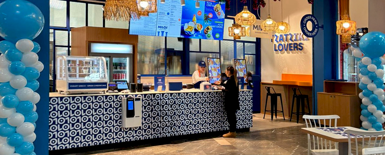 I locali MILOS sono dotati di kiosk digitali interattivi con touchscreen dove i clienti possono vedere il menu, personalizzare i piatti, ordinare e pagare in autonomia, senza l'intervento del personale. Si possono fare gli ordini anche scaricando la app,in un attimo, saltare la fila, accumulare punti, vincere premi e ricevere offerte esclusive, riservate solo ai veri intenditori di cibo greco.