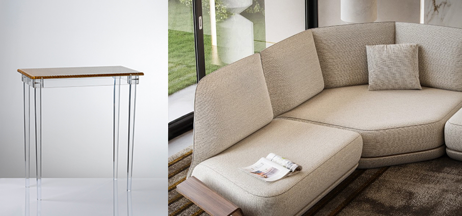 Invisibili – Mario Luca Giusti la prima collezione di complementi di arredo prodotta in edizione limitata. Il progetto si sviluppa in una serie di oggetti per l’arredamento che soccorrono il mobilio classico di ogni abitazione, interpretati come invisibili punti di appoggio per i piccoli accessori della vita quotidiana e pensati per spazi contemporanei e minimali. Il concept della collezione si racconta attraverso l’elegante consolle, nella variante rettangolare James o quadrata Bond, he combina cristallo sintetico trasparente con un piano di paglia di Vienna intrecciato dall’effetto retrò.