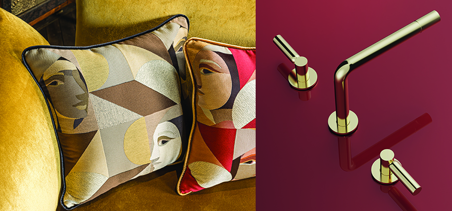 Iside & Osiride - Alessandro Bini un capolavoro di tessitura su disegno d’artista, dedicato a decorazioni lussuose e contemporanee. Manufatto di grande pregio, prosegue il progetto “Dai fasti del passato verso scenari futuri” iniziato nel 2024 e originato dal prezioso tessuto lampasso “Berenice” con una figura di donna dell’antico Egitto. L’eleganza raffinata dei filati e del disegno, il fascino della seta e le elaborate texture Jacquard a lampasso mixate in sofisticate geometrie fanno di questi tessuti la massima espressione dell’alta artigianalità e del know-how di Alessandro Bini.