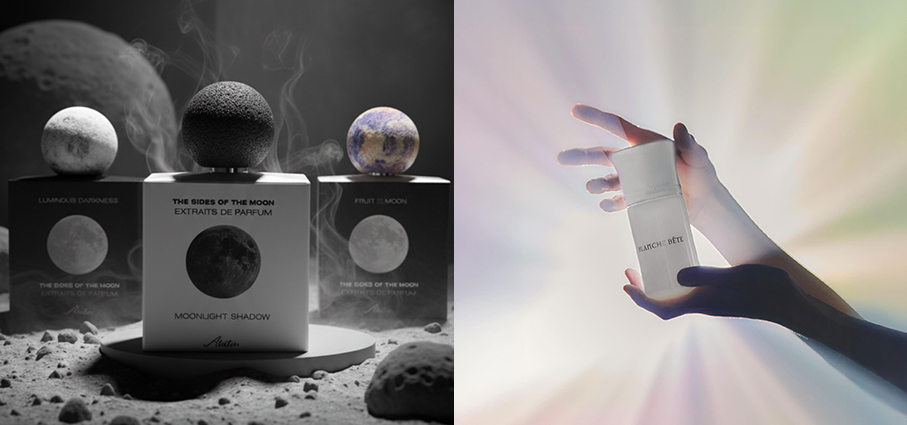 The Sides of the Moon - Abaton Exceptional Luxury Brands: tre fragranze che raccontano e sfumature visibili e nascoste della luna, simbolo di rinascita, mistero e continua trasformazione. Luminous Darkness ha un tappo bianco con venature grigie e nere, simbolo dell’equilibrio perfetto degli opposti. Moonlight Shadow possiede un tappo scuro che si riveste di riflessi brillanti, promessa di luce anche nel buio più profondo. Fruit of the Moon ha un tappo bianco animato da colori vivaci, emblema di gioia e vitalità. I tappi in resina porosa, sferici e leggermente ruvidi, assorbono la fragranza, diventando “mini profumatori” d’ambiente e piccole lune che rappresentano emozioni diverse.