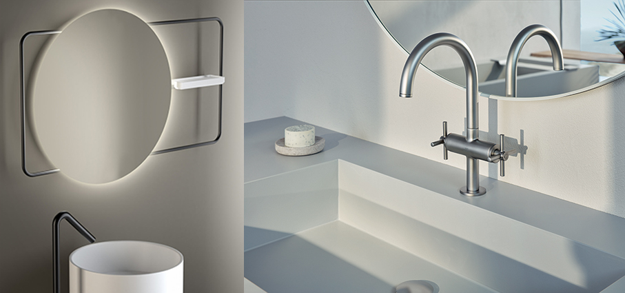 ZEROsedici di Progetto Group è un sistema multifunzione a parete che integra specchio, mensola e portasalviette in un solo elemento. Realizzato su un profilo tubolare da Ø 16 mm punta su leggerezza visiva e funzionalità compatta. Il nome stesso richiama il gesto progettuale alla base della collezione: un elemento unico, intuitivo e trasversale, pensato per ambienti bagno moderni e sofisticati.