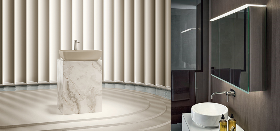 Geberit propone il mobile specchio Option, elemento indispensabile in ottica salvaspazio. Un contenitore dotato di ante e ripiani interni per ricavare un maggiore spazio dove riporre gli oggetti. Si inserisce perfettamente nella parete attraverso delle mensole interne nascoste.