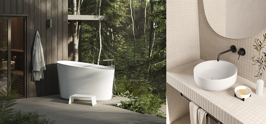 Kerid è la nuova vasca freestanding di Victoria + Albert. Si ispira agli onsen giapponesi ma prende il nome da un cratere vulcanico islandese perché sperimenta e coniuga il potere del caldo o del freddo. Compatta e alta, ha la seduta integrata che avvolge il corpo completamente, ideale sia per un bagno caldo rilassante sia per una terapia a immersione fredda energizzante. Il bordo inclinato assicura comfort ergonomico a collo e testa. Realizzata in Quarrycast™, esclusiva miscela di pietra vulcanica e resina ad alte prestazioni, è adatta anche all’uso outdoor, non ingiallisce al sole, resiste al freddo e può essere ripristinata in caso di danno accidentale. Garantita 25 anni.