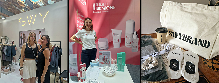 Il marchio Swy produce principalmente abbigliamento sportivo e da attività ricreative, tra cui leggings, tute, top, pantaloncini e t-shirt, insieme a integratori alimentari e prodotti per l’alimentazione sana, come barrette proteiche e collagene, oltre ad accessori correlati.