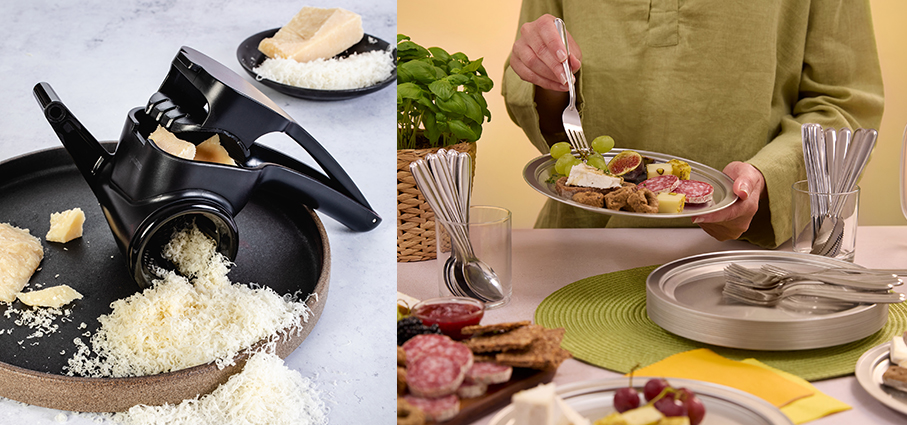 Grattugia rotante - Microplane® perfetta per sminuzzare i tradizionali formaggi a pasta dura, ma adatta anche a cioccolato e frutta secca come noci, nocciole o mandorle, con i quali arricchire ogni ricetta: dalla pasta alle insalate, dai frullati alle macedonie. Un risultato che è possibile ottenere grazie all’impiego della celebre lama in acciaio inossidabile fotoincisa e made in USA Microplane® che, affilata e precisa, grattugia alla perfezione ogni ingrediente senza lacerarlo, mantenendo così inalterati aromi, sapori e proprietà.